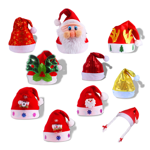Décoration de noël pour enfants, chapeau de noël, pour nouvel an, Led, en feutre, lumineux